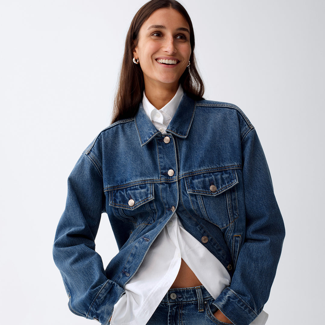 Square-Neck Denim Crop Top Dark Wash
